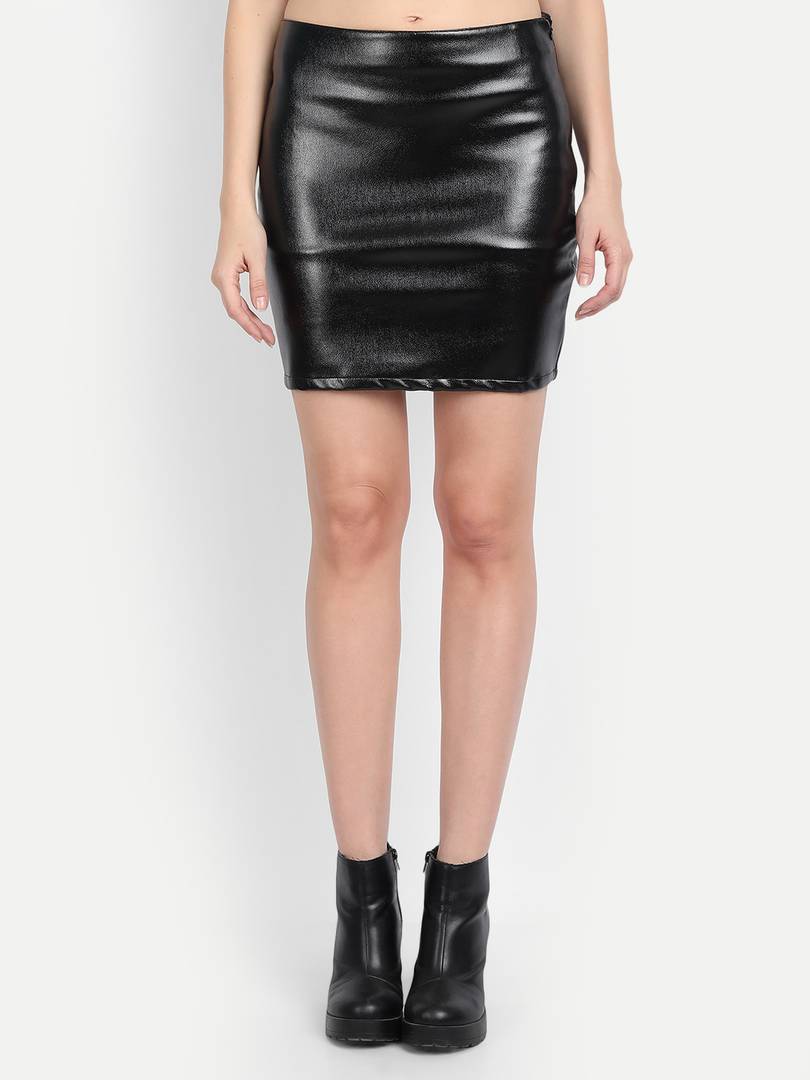 9 impression Solid Women Pencil Black Skirt