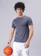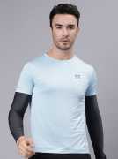 Men Solid Round Neck Polyester Blue T-Shirt