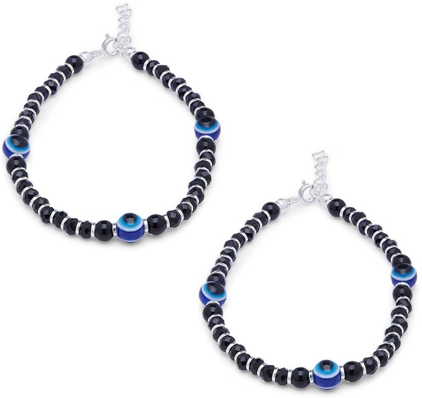 925 Pure Silver Triple Evil Eye Baby Nazariya Anklets (Pack of 2)