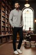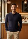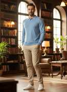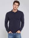 Men Solid Collared Neck Blue Sweater