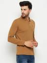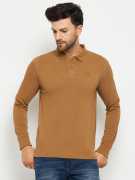 98 Degree North Solid Men Polo Neck Gold T-Shirt