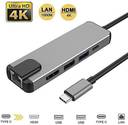 99Gems TYPE C 5 IN 1 ADAPTER USB 3.1 (USB C) to HDMI+ Ethernet (RJ45) + USB 3.0+Type C Multiport Adapter with 4k HDMI Port and 1000m LAN Port. USB Hub (Silver)