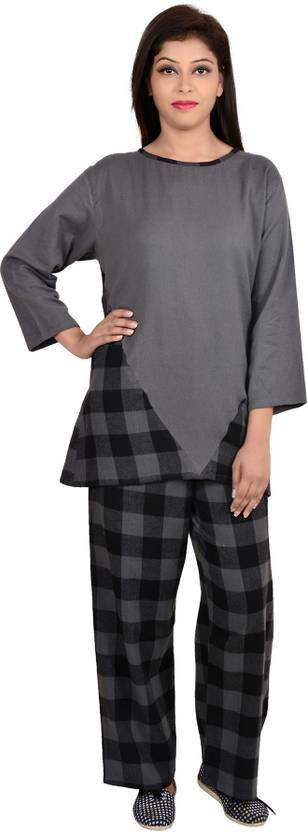 9teenagain Solid and Checks Print Night Suit Set with 100% Brushed Cotton Twill Fabric,extremely soft,lightweight and easy to carry in winters.