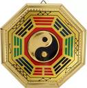 9tees Mart Vastu Feng Shui Yin Yang Bagua Mirror Pakua Mirror For Positivity Decorative Showpiece - 15 cm (Wood, Gold Plated, Gold, Multicolor)