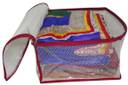 A cover made of net & plastic generally used to keep sarees organised and also used to store other garments.Stylish bag for the diva in you.Perfect to flaunt and showcase your exquisite collection.Keeps your Saree safe in your Wardrobe.42 x 31 x 18(L x Bx H)cm