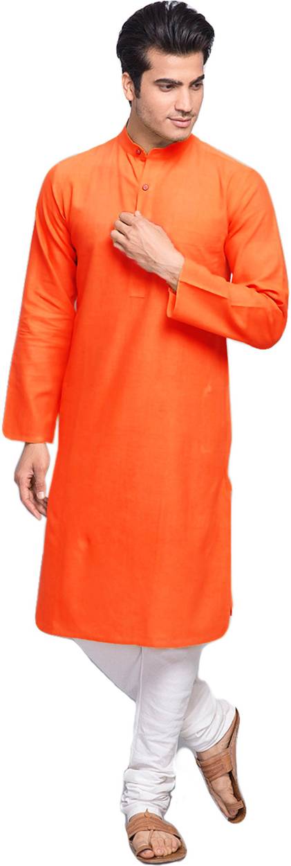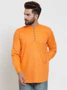 Men Solid Pure Cotton Straight Kurta (Yellow)