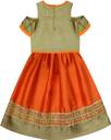 A.T.U.N. All Things Uber Nice Girls Lehenga Choli Ethnic Wear Embroidered Lehenga, Choli and Dupatta Set (Orange, Pack of 1)