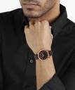 Armani Exchange's 44mm watch features a brown sunray dial, three-hand day-date movement and brown leather strap.