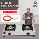 Sigri-wala Primecook Manual Mini Combo( Lighter+ Hose Pipe) Stainless Steel Manual Gas Stove (2 Burners)