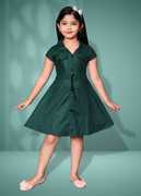 FairyTeller Girls Midi/Knee Length Casual Dress (Dark Green, Short Sleeve)