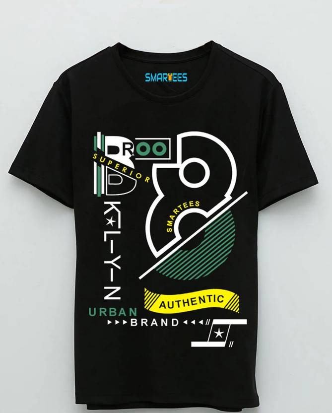 SmarteesĀ Men Printed Round Neck Cotton Blend Black T-Shirt