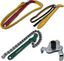 The tool uses a belt or chain that wraps around the oil filter, offering a strong grip on filters that are difficult to remove.