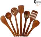 OGGN Set of 7 Wooden Spatula Kitchen Tool Set (Brown, Cooking Spoon)