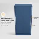 This Godrej 2-Door Almirah comes with steel handles and sliding doors, it is perfect for compact spaces and provides individual access from both ends. The dual-tone accents complement your home decor. You can lock your personal belongings safely in its lockable drawers and organise your clothes and essentials. The sturdy steel construction offers long-lasting durability and provides stability to your wardrobe.