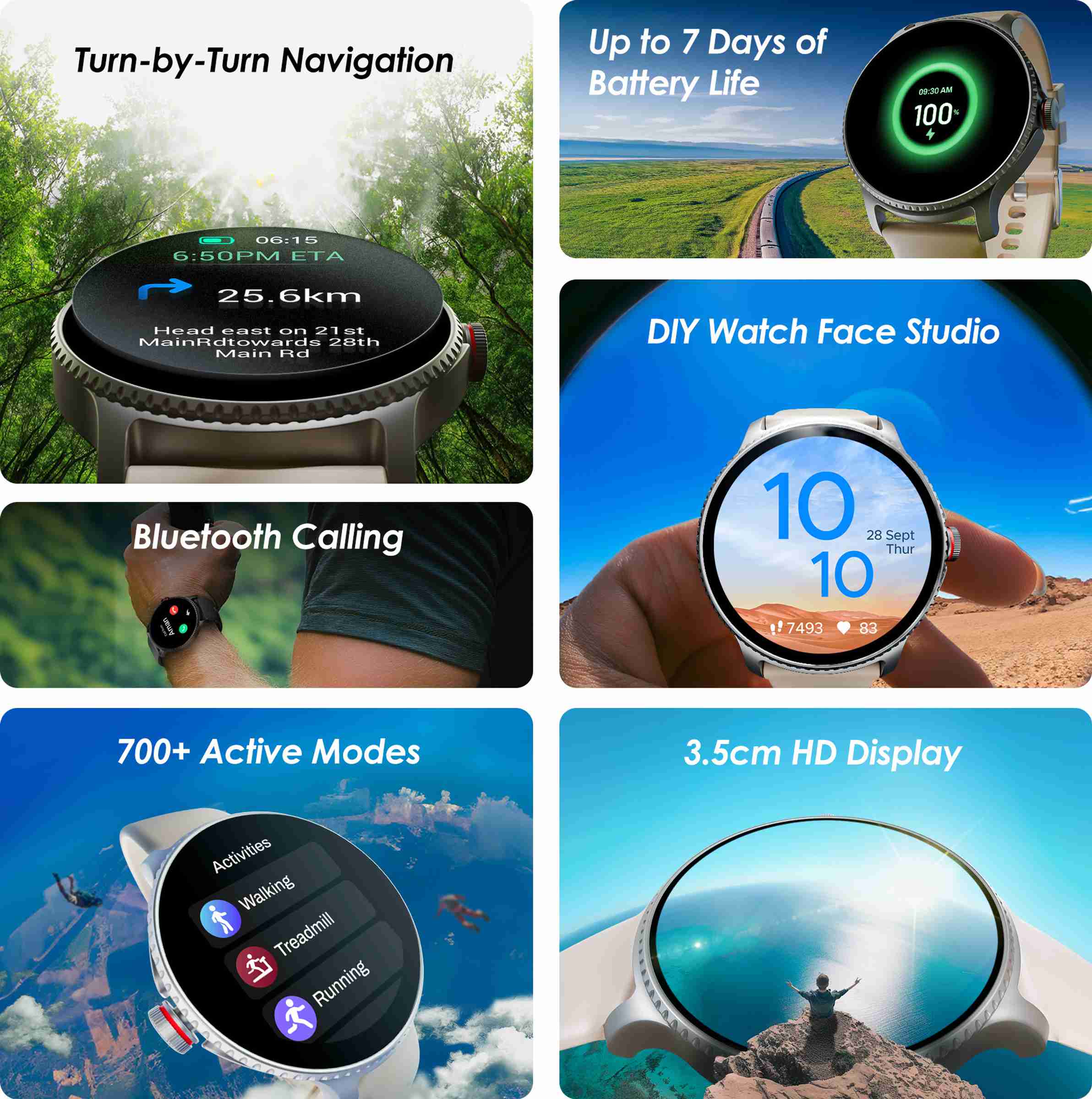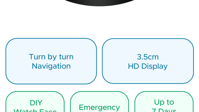 3.53(1.39") HD Display: Check the time, navigation routes, activity records, & more on the 1.39'' (3.53 cm) TFT display. Designed with 240x240p resolution for high clarity, this watch makes it easy to view details round-the-clock.