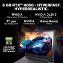 Experience high-speed, AI-accelerated gaming with 6 GB NVIDIA GeForce RTX 4050 graphics, featuring Game Ready Drivers. - NVIDIA Ada Lovelace Architecture - NVIDIA G-SYNC READY - NVIDIA DLSS 3 AI Tensor Cores - 3rd gen Ray Tracing Cores