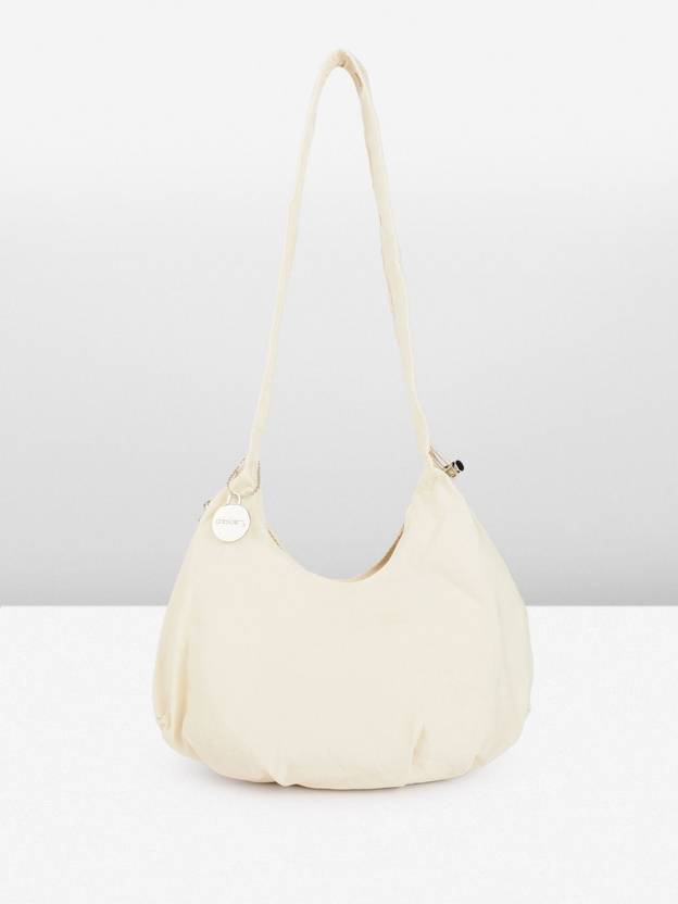 Off white solid hobo bag 1 main compartment, has a zip closure 1 inner pocket Tablet sleeve: no One handle