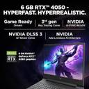Experience high-speed, AI-accelerated gaming with 6 GB NVIDIA GeForce RTX 4050 graphics, featuring Game Ready Drivers. • NVIDIA Ada Lovelace Architecture • NVIDIA G-SYNC READY • NVIDIA DLSS 3 AI Tensor Cores • 3rd gen Ray Tracing Cores