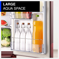 This refrigerator ensures to maintain the freshness of your food for a long time. The Turbo Cooling technology of this refrigerator makes ice quickly and provides fast cooling. The Advanced Capillary technology ensures fast cooling as the capillary tube which carries the refrigerant has a twin-layer insulation to maintain the temperature. This refrigerator has a tall base which allows you to clean underneath without any hassles. You can easily store large bottles in this refrigerator, thanks to its large aqua space.