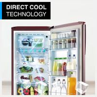 This single door refrigerator uses direct cooling technology for efficient and reliable performance.