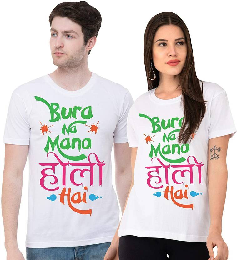 Pack of 2 Couple Printed Round Neck Polyester White T-Shirt