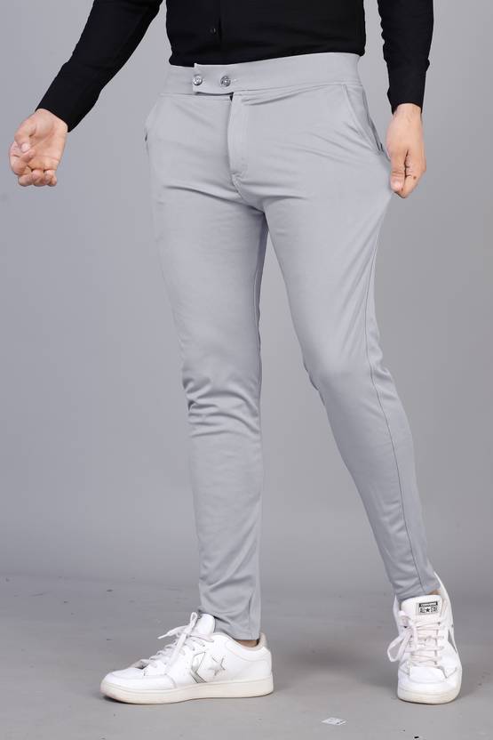 Men Slim Fit Grey Polycotton Trousers