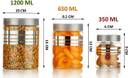 Air Tight Seal: The Printed Line Storage Containers have an air tight seal that completely locks the Crisp & flavour of the contents you put in as does not lose moisture. The taste and nutritive value of the contents remains intact for a long time making the containers very appropriate for storing dry food, pulses, and spices Food Grade & BPA Free Canisters: This air tight is free from BPA (Bisphenol A), which causes health hazards when it comes in contact with food & liquids Ensuring a healthier lifestyle using Bisphenol A free Products Package Content: 24 Pcs Container Jar Set with Spoons Including 6 Pcs of Each Size 250ml, 350ml , 650ml , 1200ml | Material: Plastic | Airtight / 100% Leak Proof. | 4 Size Containers in 6 Quantity | Color: Silver Line Transparent. These Masala Containers are Unbreakable, BPA free, Food safe, Airtight, Transparent, Easy opening, Scratch resistance, Rust free, Dishwasher safe and Heavy-duty food grade body with superior break resistance. Easy to open lid: The Containers have swift & easy to operate lid, Ideal for dry food, pulses, spices , Cereals