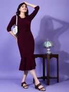 Attire Empire Women Bodycon Dark Green Midi/Calf Length Dress