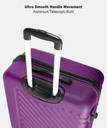 polycarbonate Textured Shell, push button strolley, 360 degrees wheeling mechanism, Zippered Comvipack on the top shell, cross ribbon for the bottom shell
