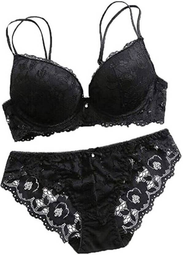 Bra & Panty Set Embroidered Black Lingerie Set