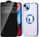 A3sprime Back Cover for APPLE iPhone 15, with Full Coverage Tempered Glass Screen Protector (Blue, Transparent, Camera Bump Protector, Pack of: 2)