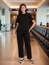 Check out this stylish outfit featuring a vibrant black t-shirt paired with sleek pants, perfect for anyone looking to add a pop of color to their wardrobe! The t-shirt boasts a comfortable fit, making it ideal for casual outings or lounging at home, while the pants offer a modern silhouette that complements the top beautifully. Whether you're heading out for a coffee date or just hanging out with friends, this ensemble is versatile enough to suit any occasion. The rich black hue is not only eye-catching but also trendy, ensuring you stand out in a crowd. Plus, the combination of comfort and style makes this outfit a must-have for fashion-forward individuals.