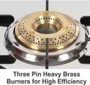 Featuring three high-quality brass burners, each with individual control knobs, our gas stove offers precise heat distribution for versatile cooking options. Whether you're simmering sauces, boiling pasta, or sautéing vegetables, you can easily adjust the flame to suit your culinary needs.