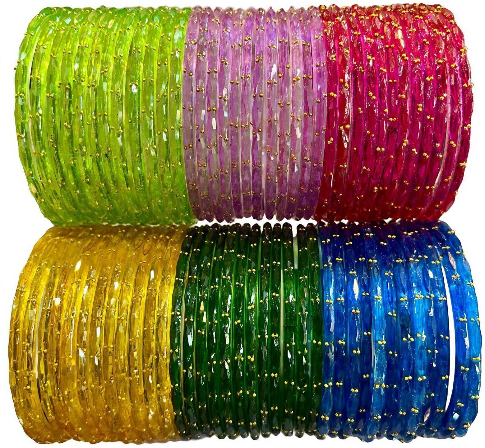 Multicolour fancy glass bangle set with 72 pieces in colours. Lightweight, smooth finish and comfortable to wear. Ideal for daily wear, weddings, festivals, pooja, parties and gifting. Perfect to match with multiple ethnic outfits.