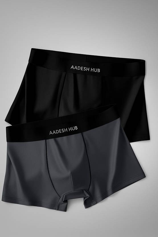 Pack of 2 stylish boxer briefs in Grey, Blue, and maroon Made from a high-quality polyester-spandex blend for stretch and comfort Moisture-wicking fabric keeps you dry and fresh all day Mid-rise fit with contoured front pouch for better support Flat-lock seams to avoid irritation and chafing Tag-free comfort and soft waistband with AADESH HUB branding Perfect for daily wear, gym, or travel Breathable, durable, and machine-washable