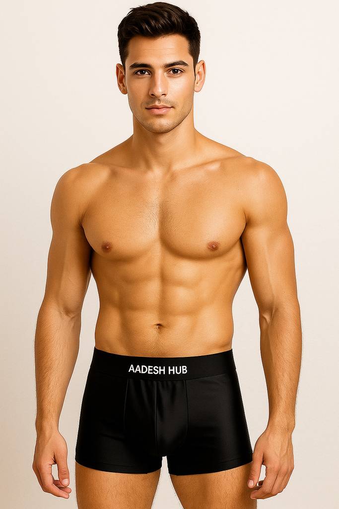 Pack of 1 stylish boxer briefs in Made from a high-quality polyester-spandex blend for stretch and comfort Moisture-wicking fabric keeps you dry and fresh all day Mid-rise fit with contoured front pouch for better support Flat-lock seams to avoid irritation and chafing Tag-free comfort and soft waistband with AADESH HUB branding Perfect for daily wear, gym, or travel Breathable, durable, and machine-washable.