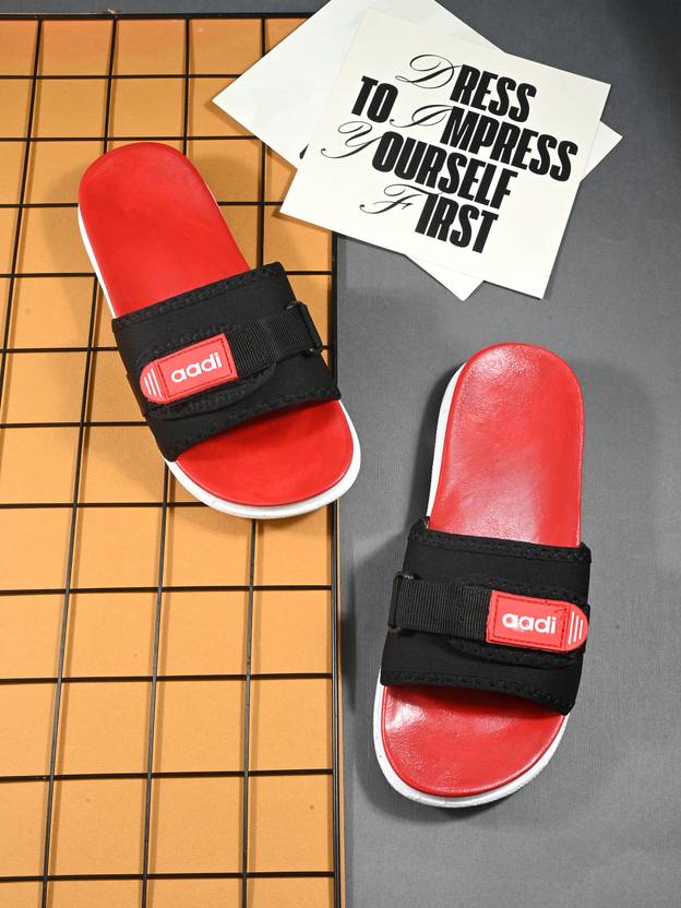 aadi Men Red Synthetic Leather Daily Casual Slides (Red, Black , 2)