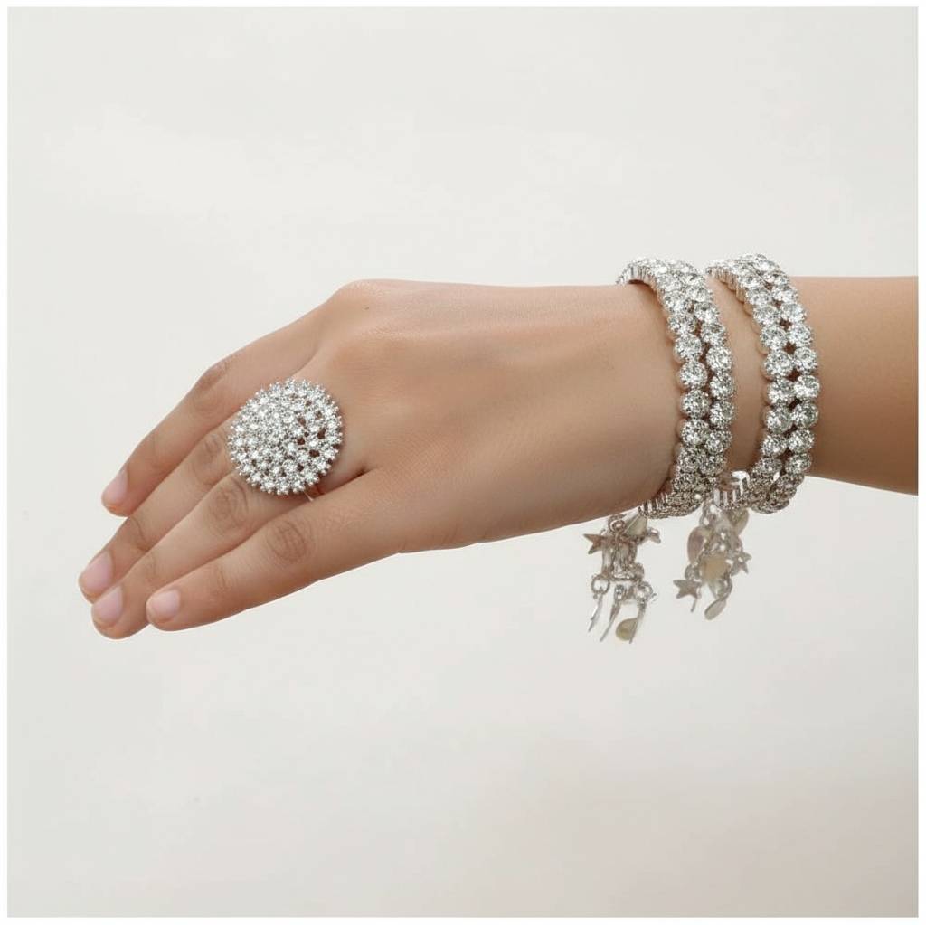 Aadrion Alloy Diamond Copper Plated Chain Ring - Single Finger