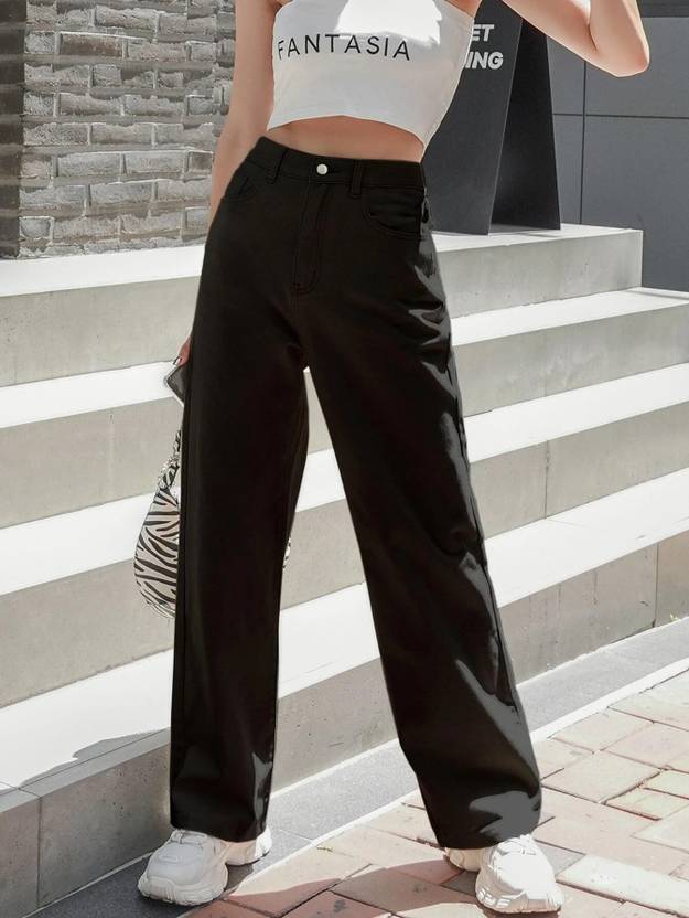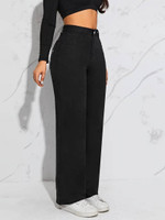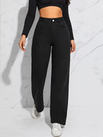 Featuring a secure button closure, these jeans provide a snug and comfortable fit. The curved pockets are not only stylish but also practical, offering ample space for your essentials. You can wear these on a busy day when you can easily access your phone or keys from the curved pockets without carrying an additional bag. The high-rise design combined with the secure closure ensures that these jeans stay in place, giving you confidence and ease of movement throughout the day.