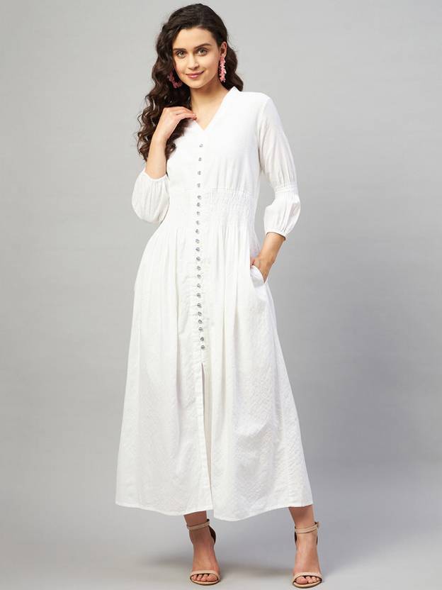 aaheli Women Fit and Flare White Maxi/Full Length Dress