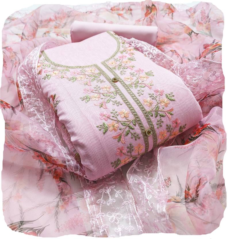 Impress everyone with your stunning ethnic & traditional look by wearing this beautiful Chanderi Cotton dress material from the house of Rubani. The style is more about being yourself. Crafted using premium quality Chanderi Cotton fabric. Rubani is a fashion brand that represents style and quality. It works on a basis of creativity, Effortless style, authenticity and easy-going living are at the heart of the brand’s philosophy. A style something very individual, personal and unique.