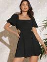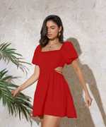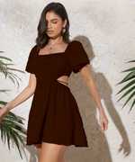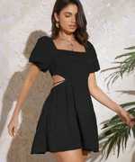 Aahwan Women A-line Black Above Knee/Mid Thigh Length Dress