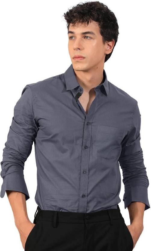 AAI CREATION Men Solid Casual Grey Shirt