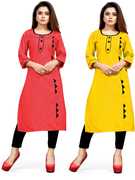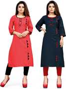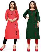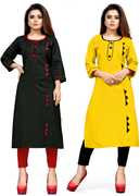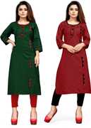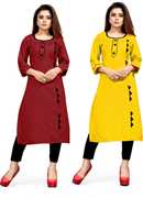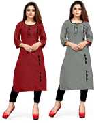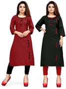 AAI MOGAL Women Solid Straight Kurta (Maroon, Black)