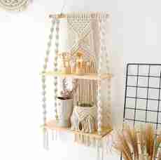 RAKANO Macrame Wall Hanging Shelf (Beige)