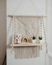 Aain Macrame Wall shelf Hangers Cotton Rope Wooden Dowel Wooden Plank Wooden Wall Shelf (Number of Shelves - 1, White)