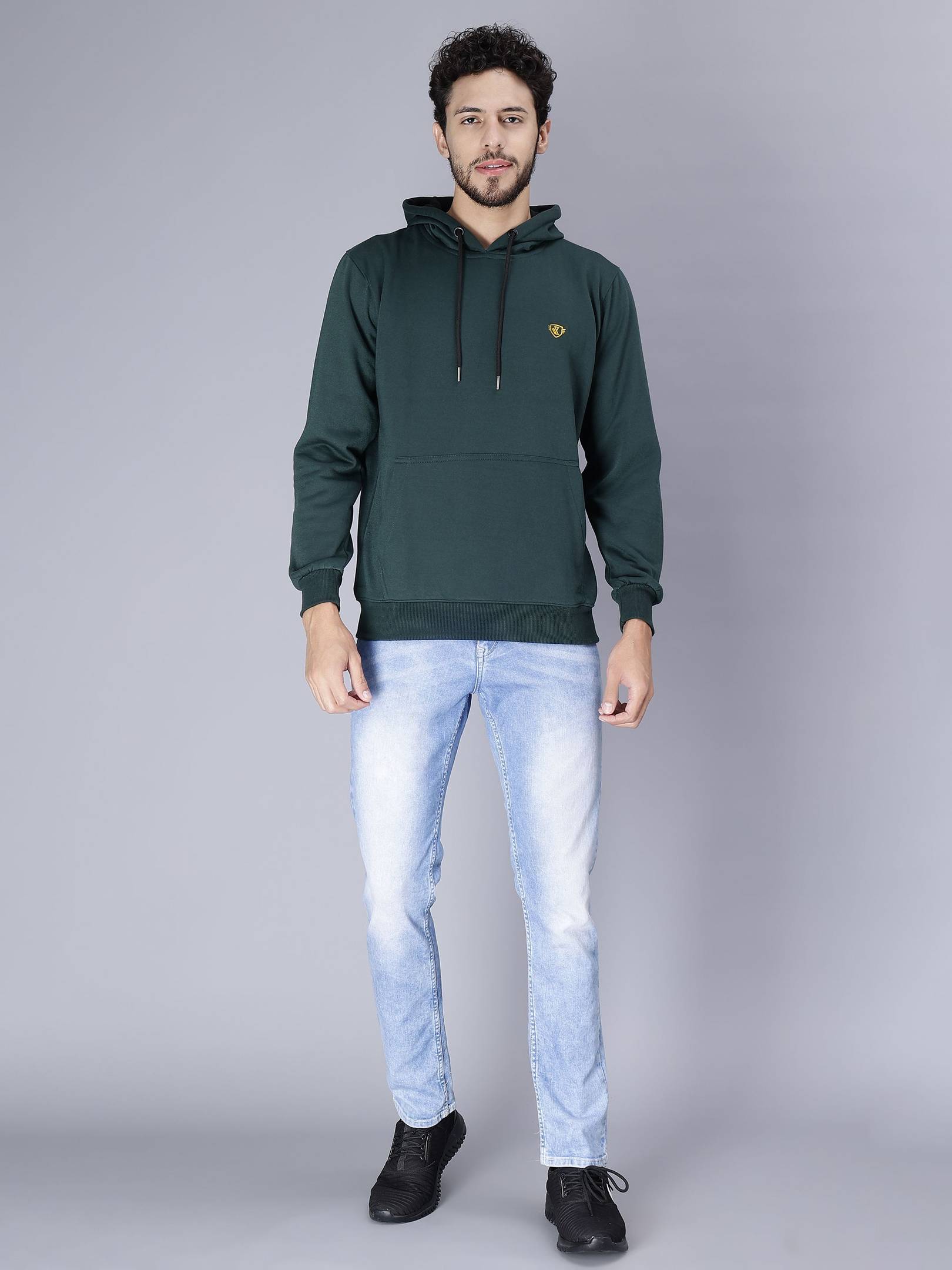 Stay warm and stylish with this men's full-sleeve solid hooded sweatshirt. Made from soft, breathable fabric, it offers a comfortable fit and a sleek, modern look – perfect for casual outings or lounging