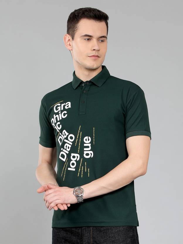 AAITHAN Men Printed Polo Neck Cotton Blend Dark Green T-Shirt