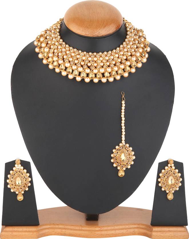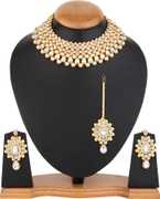 This necklace set is classy and stylish ,perfect addition to your jewellery collection. it can blend perfectly on any dress and can be worn on any occasion ,from a wedding to a night out with the ladies or simply while trudging down the high street. The intricate work details & alluring craftmanship is unavoidably attractive. These skin friendly earrigs are rust free and long-lasting. Just a glance will be surely make you fall in love with this designer earrings. Artfully designed these earrings enhance your inner beauty, representing a classic fusion of exquisite craftmanship and famine elegance, this set definitely be treasured inclusion in every woman jewellery collection.