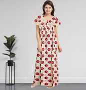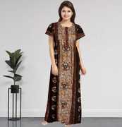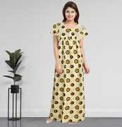 We offers this delicately rich long Printed nighty dress for a sweat free comfort all night long. This a perfect pick for women who are fond of stylish nightwear. This short sleeved nighty is a must have for your night wear needs. Made with 100% soft Cotton to keep you cool all throughout.